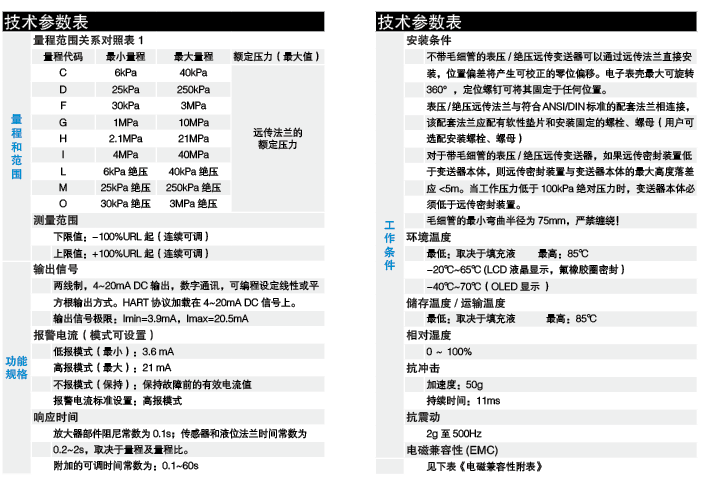 测量范围(未迁移时):0—2KPa~40MPa